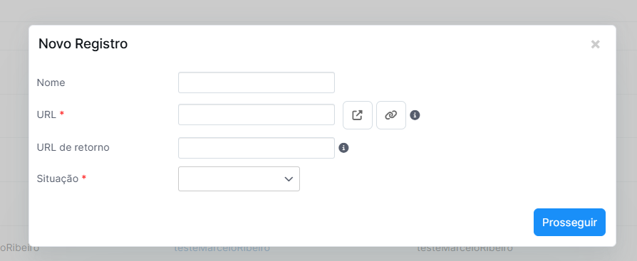 Defina o Nome, URL e mantenha a situação como "Ativo": Escolha um nome que identifique a campanha ou o plano específico.