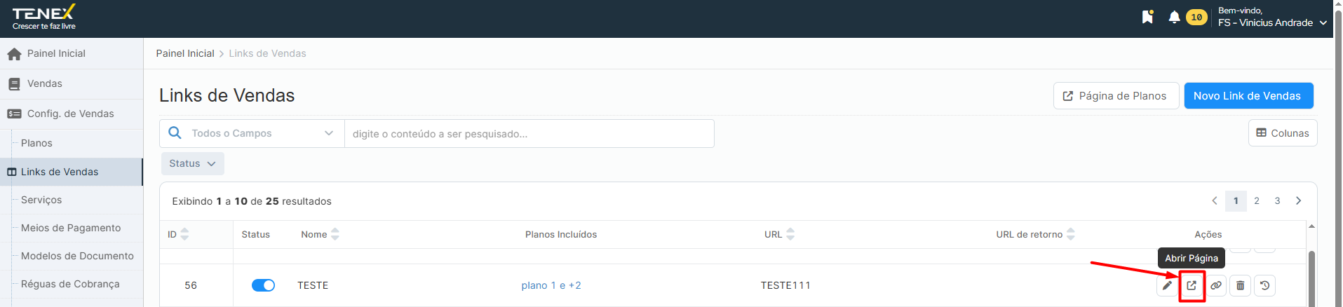 Para acessar ao link criado, basta selecionar o botão "Abrir página":