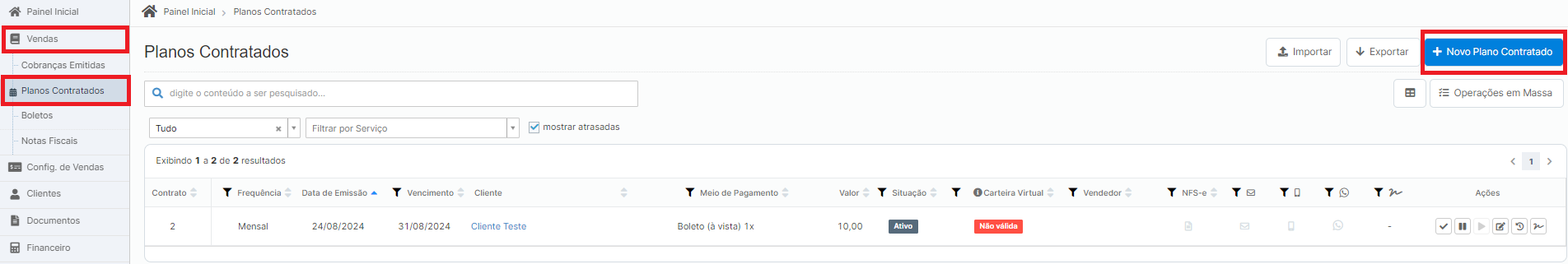 Pode consultar e editar as suas cobranças agendadas a qualquer momento em: Vendas > Planos Contratados.