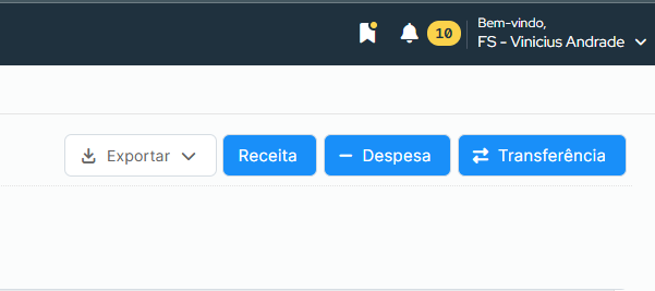 Receitas e Despesas: Registre novos lançamentos diretamente nesta tela, sem precisar mudar de módulo.
